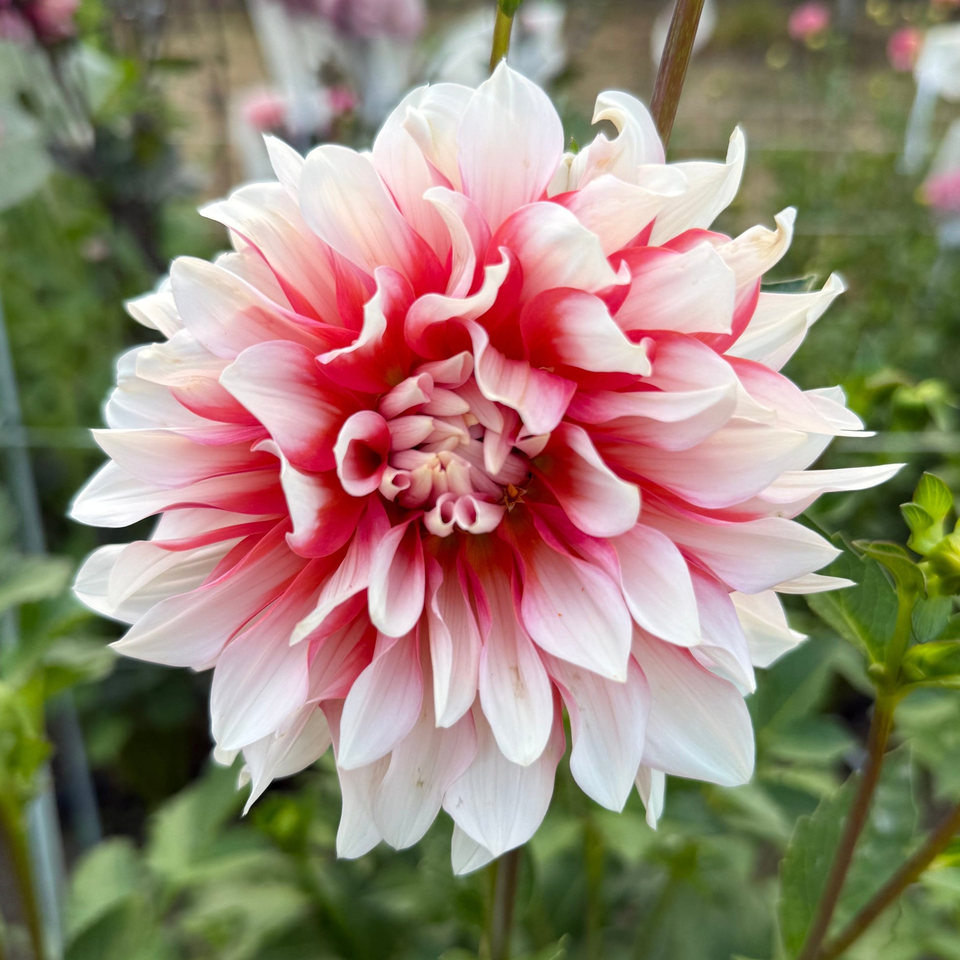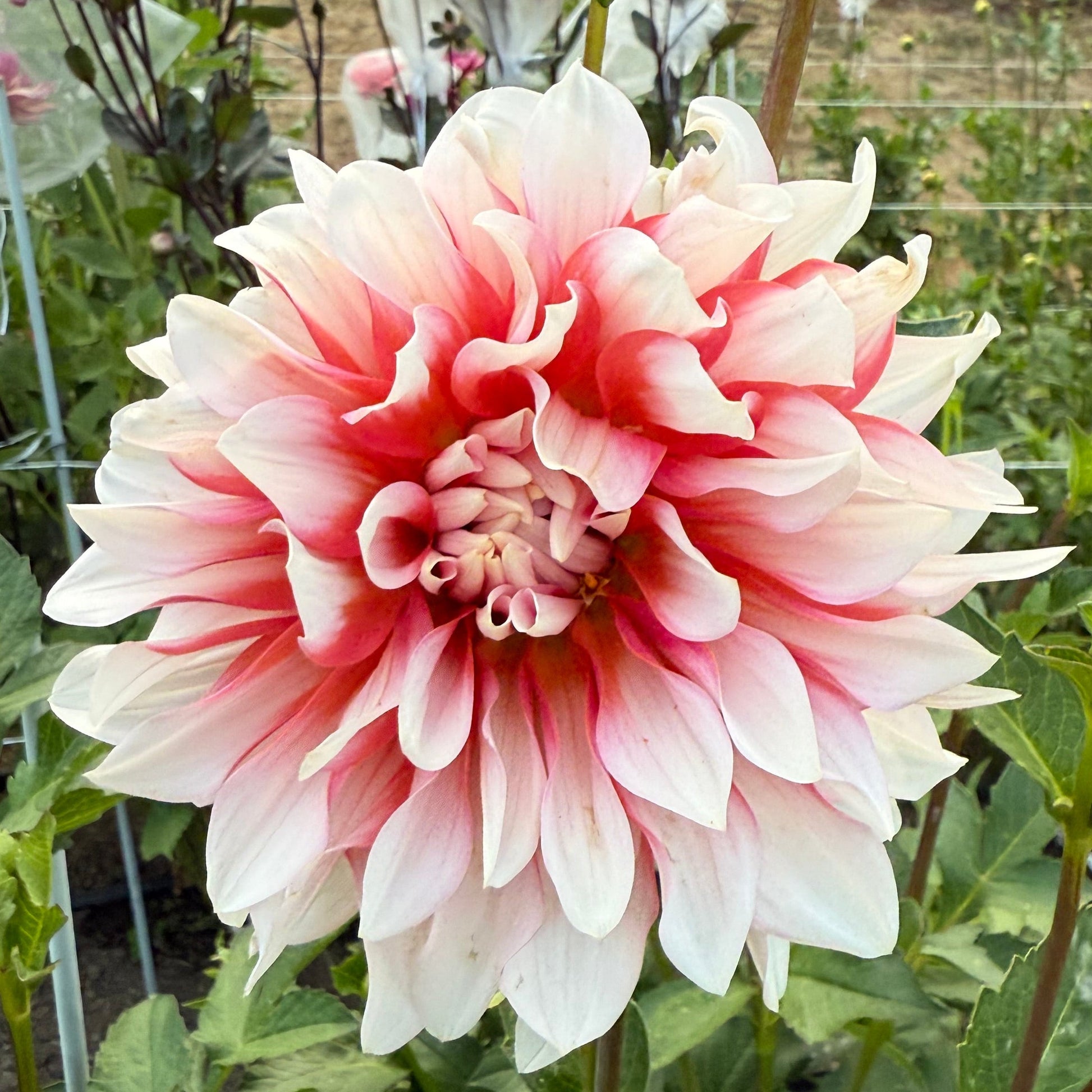 This dahlia starts off red in the center and transistions to a beautfiul soft salmon/orange with an ombre of white on the tips in the fall. The beauty is exceptional in late fall. featured pictures are from mid summer. Listing is for one (1) tuber.